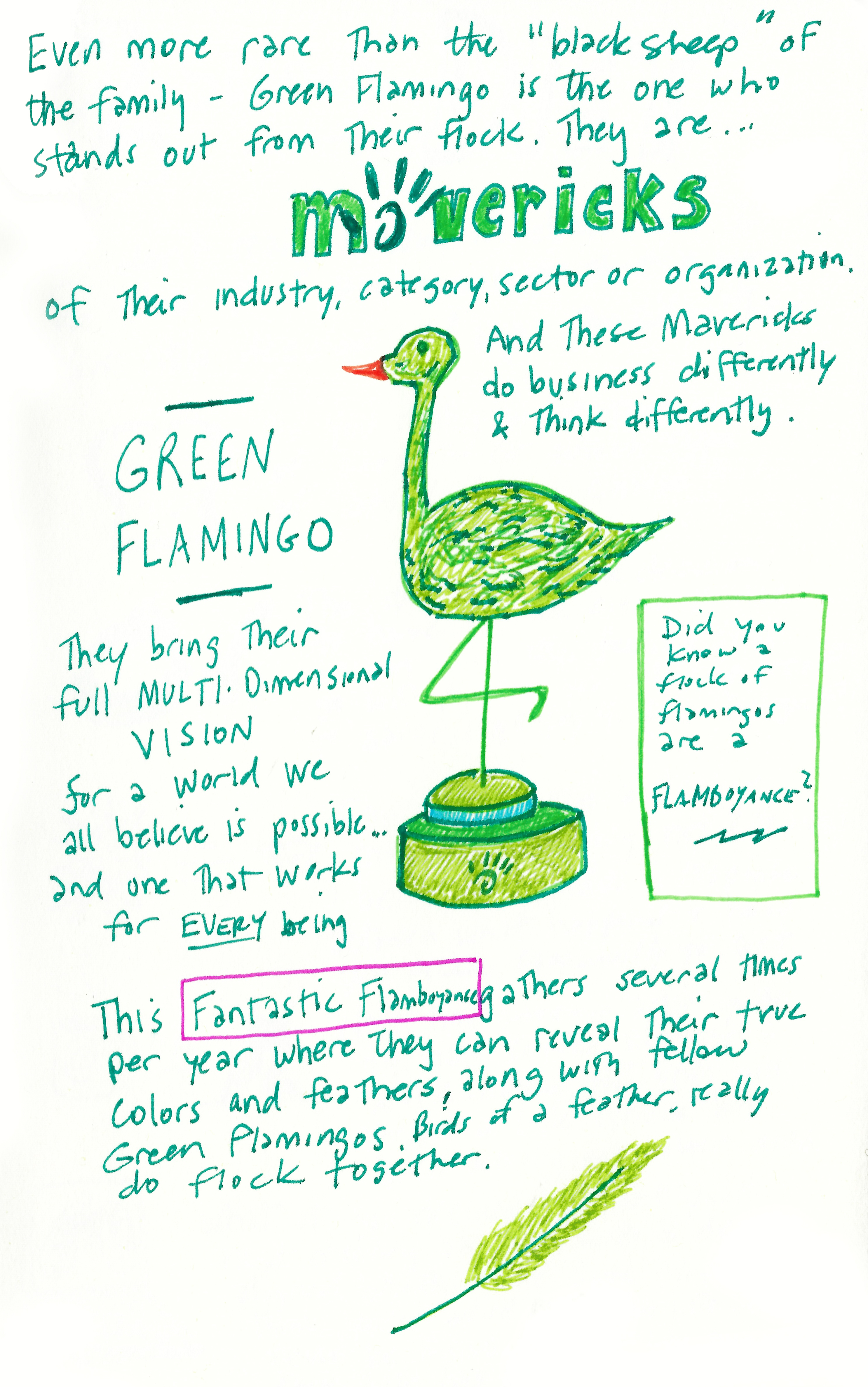 Some people are definitely not meant to blend in. The green flamingo is rarer than the black sheep. It stands out from the flock, not