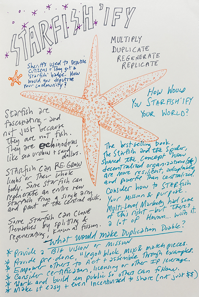 Multiply, replicate, regenerate, and duplicate again. Starfish’ify your world. Huh? Think about it. Starfish don’t just survive – they regenerate. Lose a limb – they