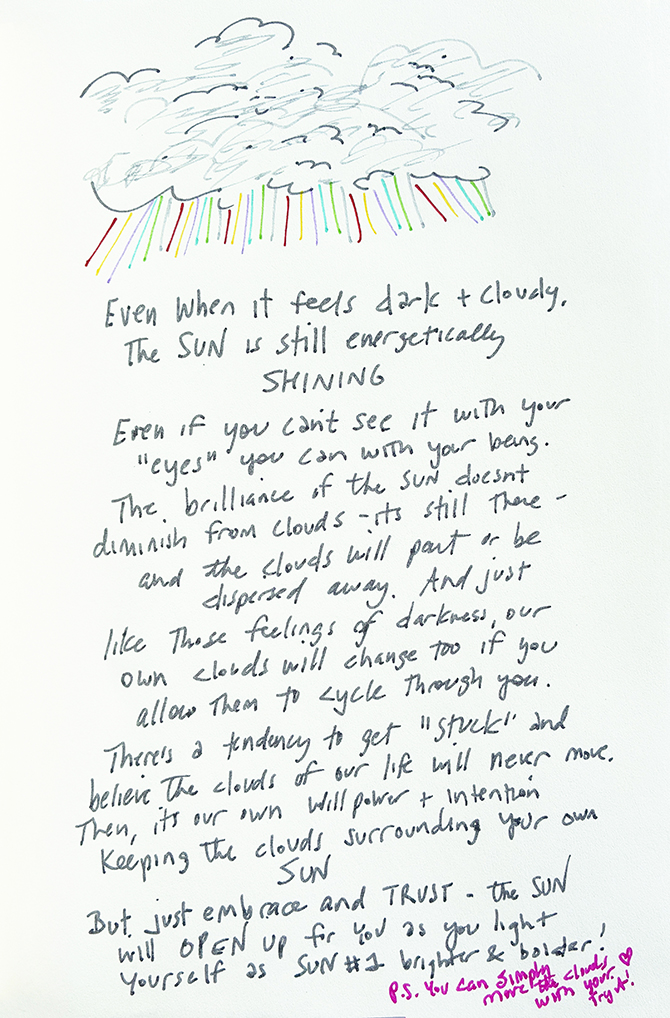 Your brilliance doesn’t go away – it’s just hidden at the moment. Even when it feels dark and cloudy, we logically know the sun hasn’t