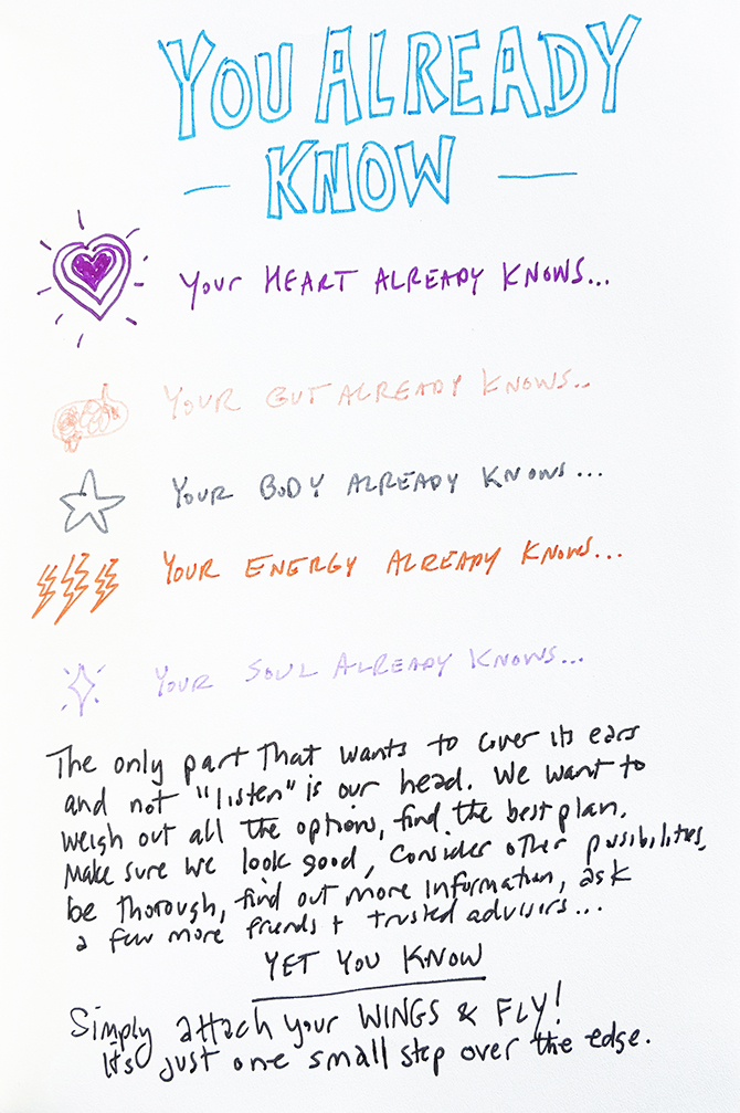 Following your heart is frequently scary – but never wrong. You already know. Your heart already knows. Your gut already knows. Your body, your energy,