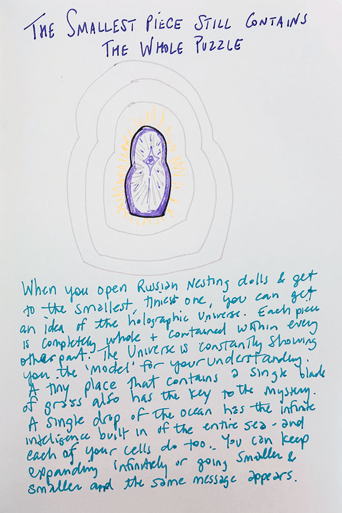 Even the smallest piece carries the entire universe. The universe appears in each of the tiniest parts. A single drop of water holds the ocean.