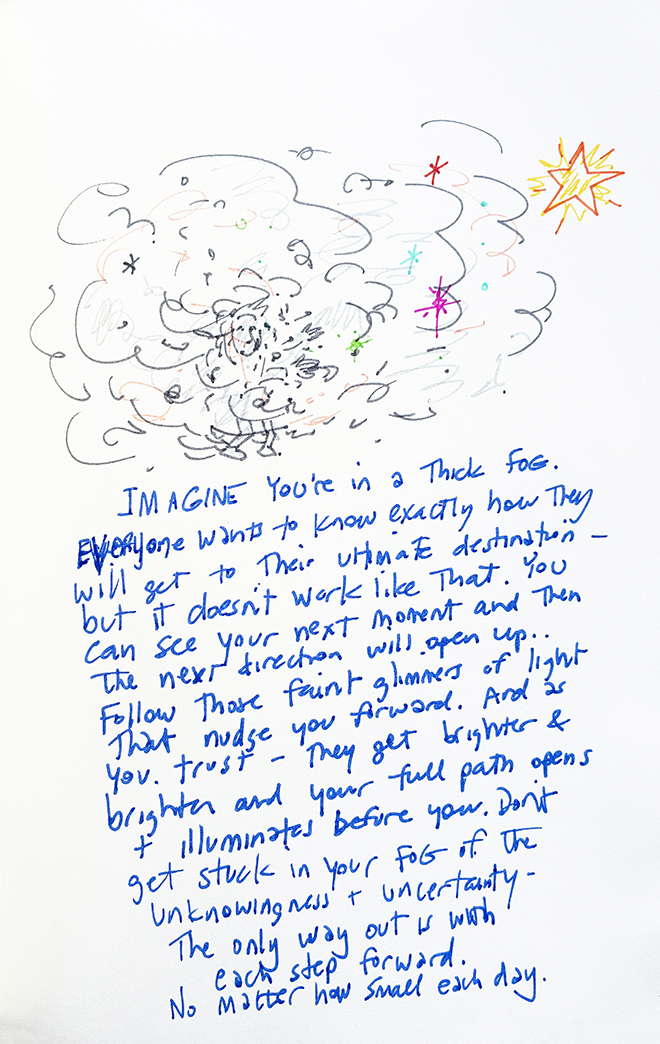 The next step will always reveal itself when you keep walking. Imagine you’re walking through a thick fog. Everyone wants to know exactly how they