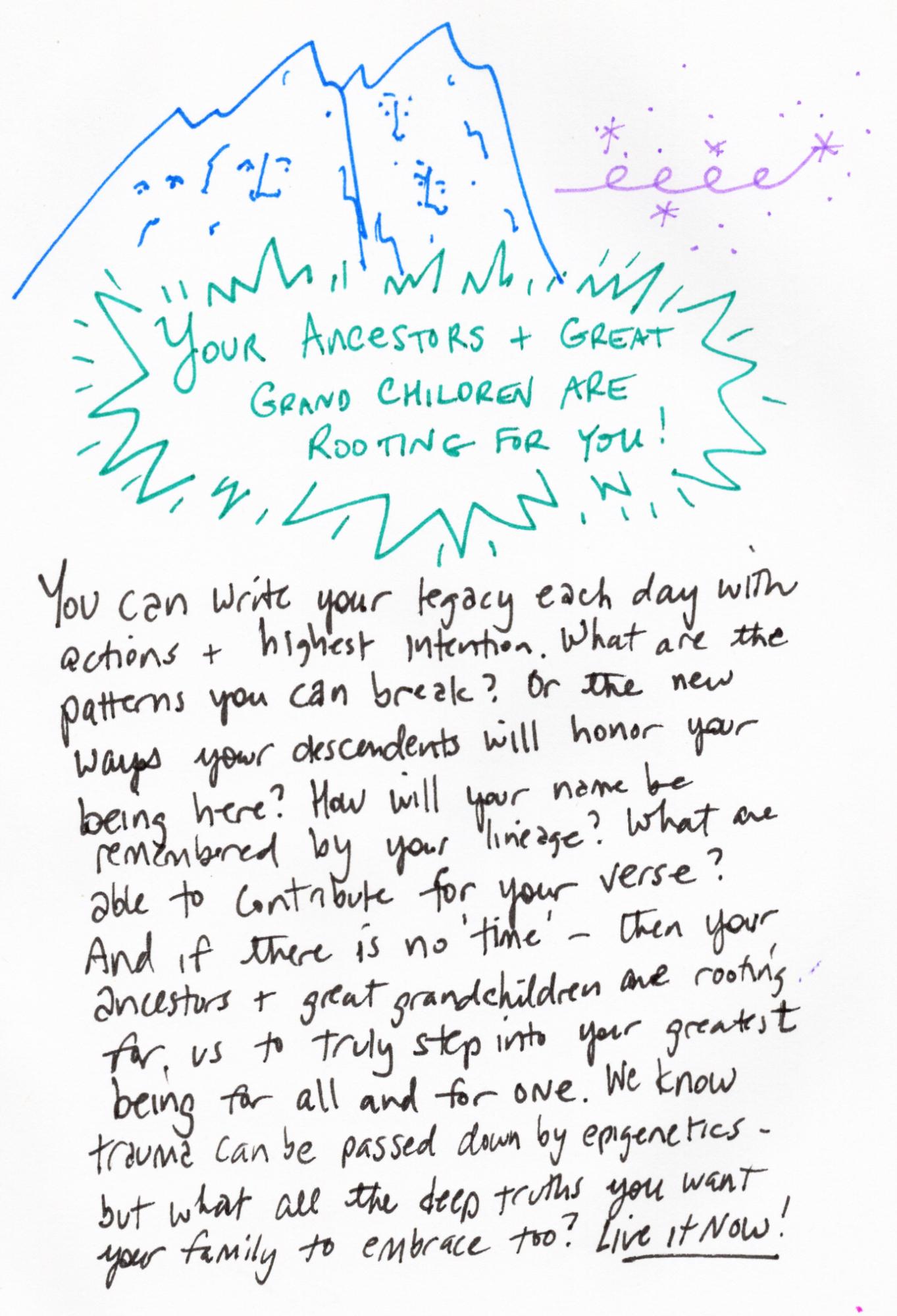 You’re being cheered on by more than you know. You’re rewriting history in this moment. Right now… Your ancestors are whispering, your great-grandchildren are watching…and