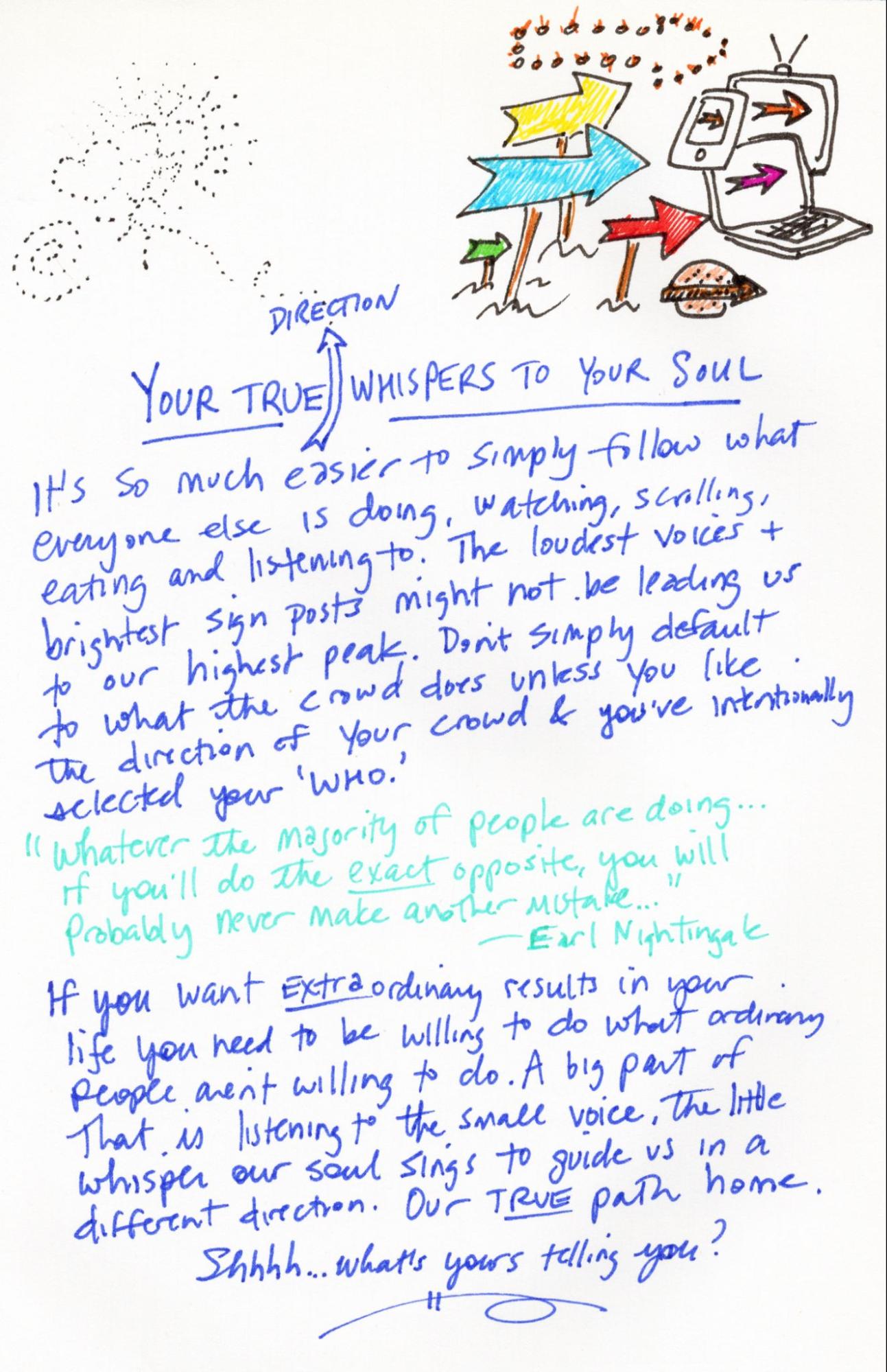 Follow the quiet signal on the road less traveled. There’s a quiet voice inside you. One that doesn’t shout… but whispers. It’s your TRUE direction.