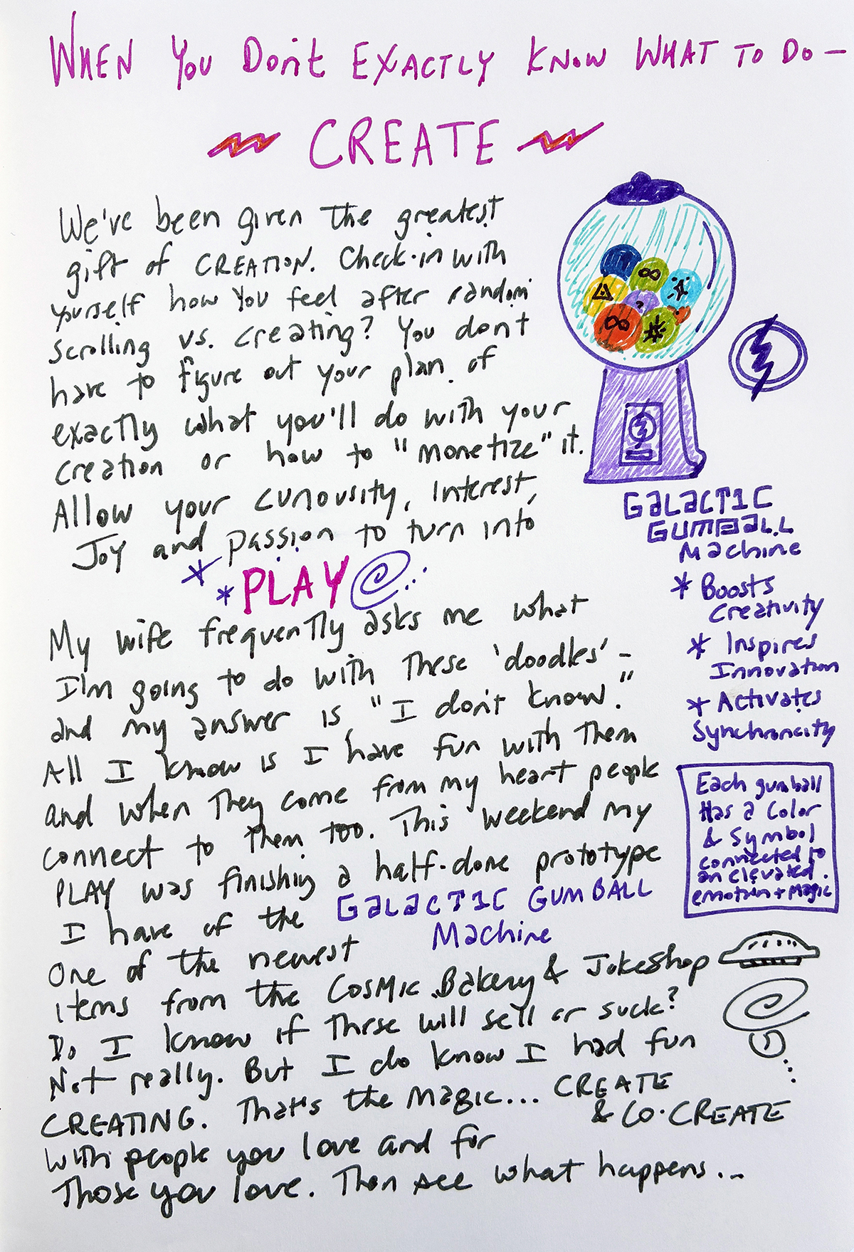 It’s a really cool way of enhancing creativity, innovation and nudging synchronicity. Plus, they’re all-natural gumballs with hand drawn activation symbols made from edible ink.
